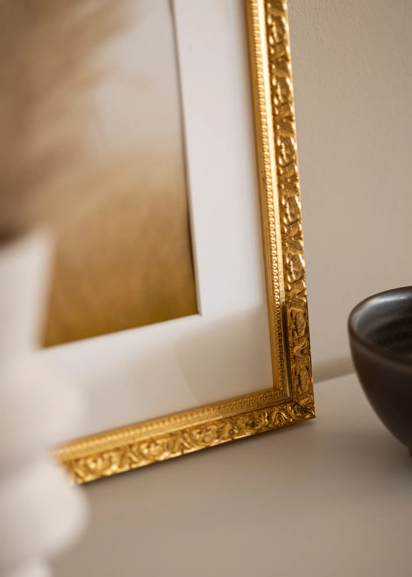 Élégant cadre doré d'inspiration rétro de haute qualité et au design exclusif, fabriqué en Italie. Rehausse vos plus belles photos, en particulier en association avec un passe-partout (non inclus)