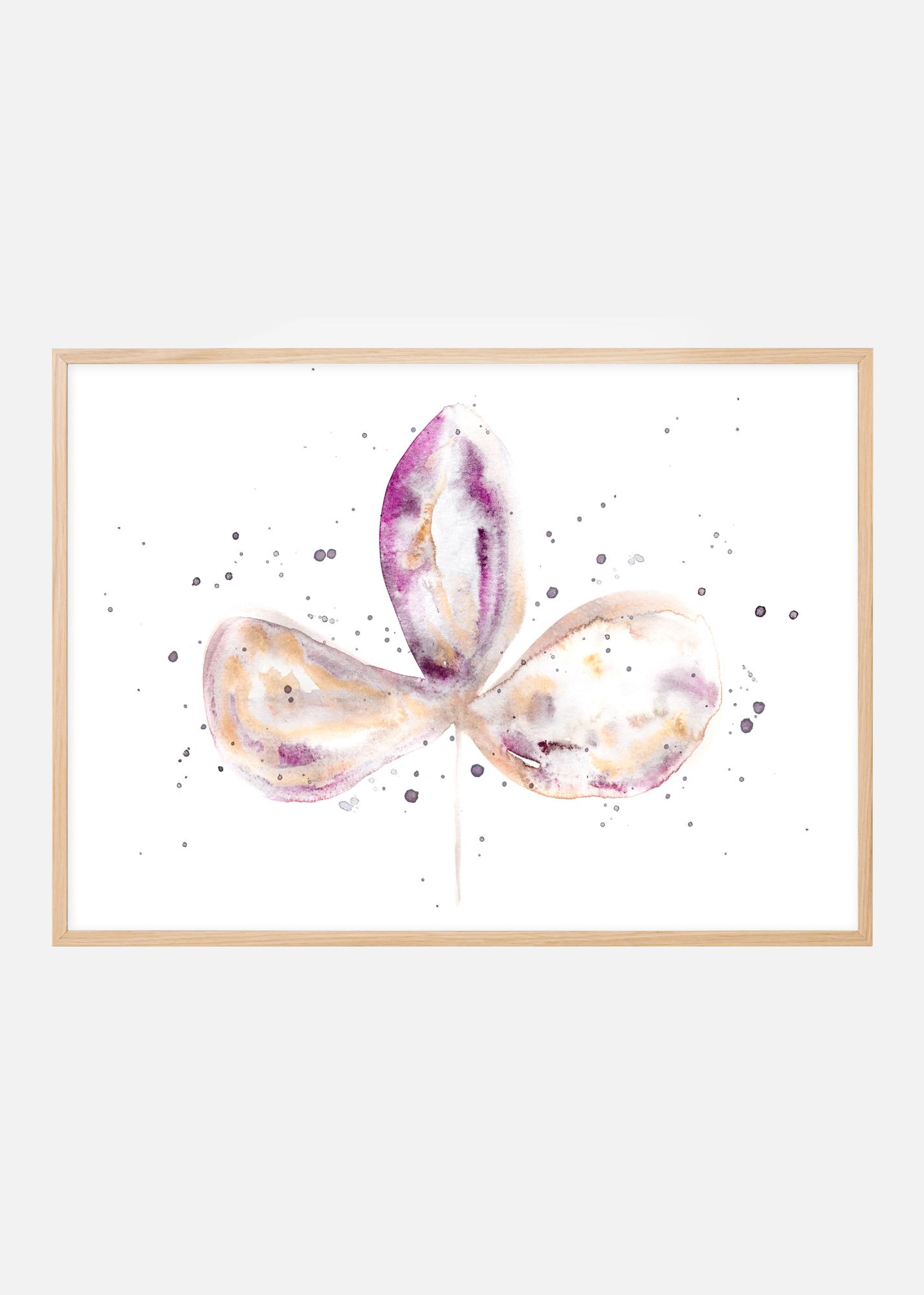 Une affiche lumineuse de trois pétales violets au centre d'un fond blanc. Différents tons de mauve créent ces douces feuilles expansives. Des points de peinture violets s'échappent des feuilles pour donner un côté abstraie. Faites ressortir les couleurs en l'accrochant sur un mur lilas.