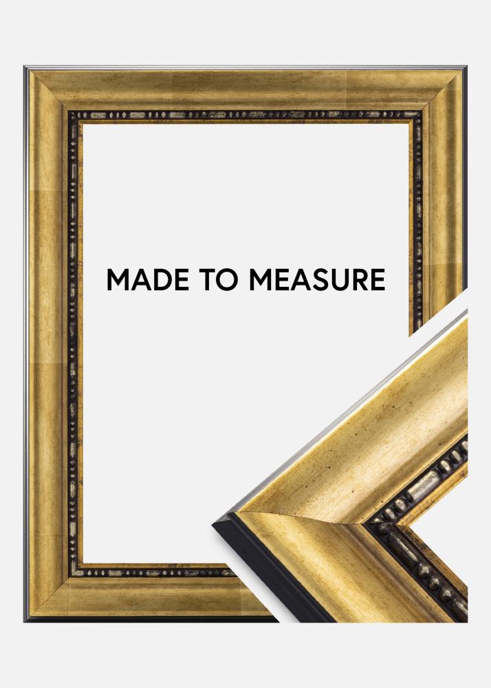 Cadre pour portrait classique pour les images que vous adorez. Le cadre a des côtés noirs avec une couleur or profilée sur le devant et des décorations au plus proche du motif.