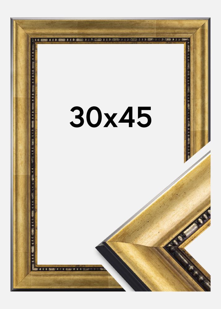 Cadre pour portrait classique pour les images que vous adorez. Le cadre a des côtés noirs et une couleur dorée profilée sur le devant avec des décorations au plus proche du motif.
