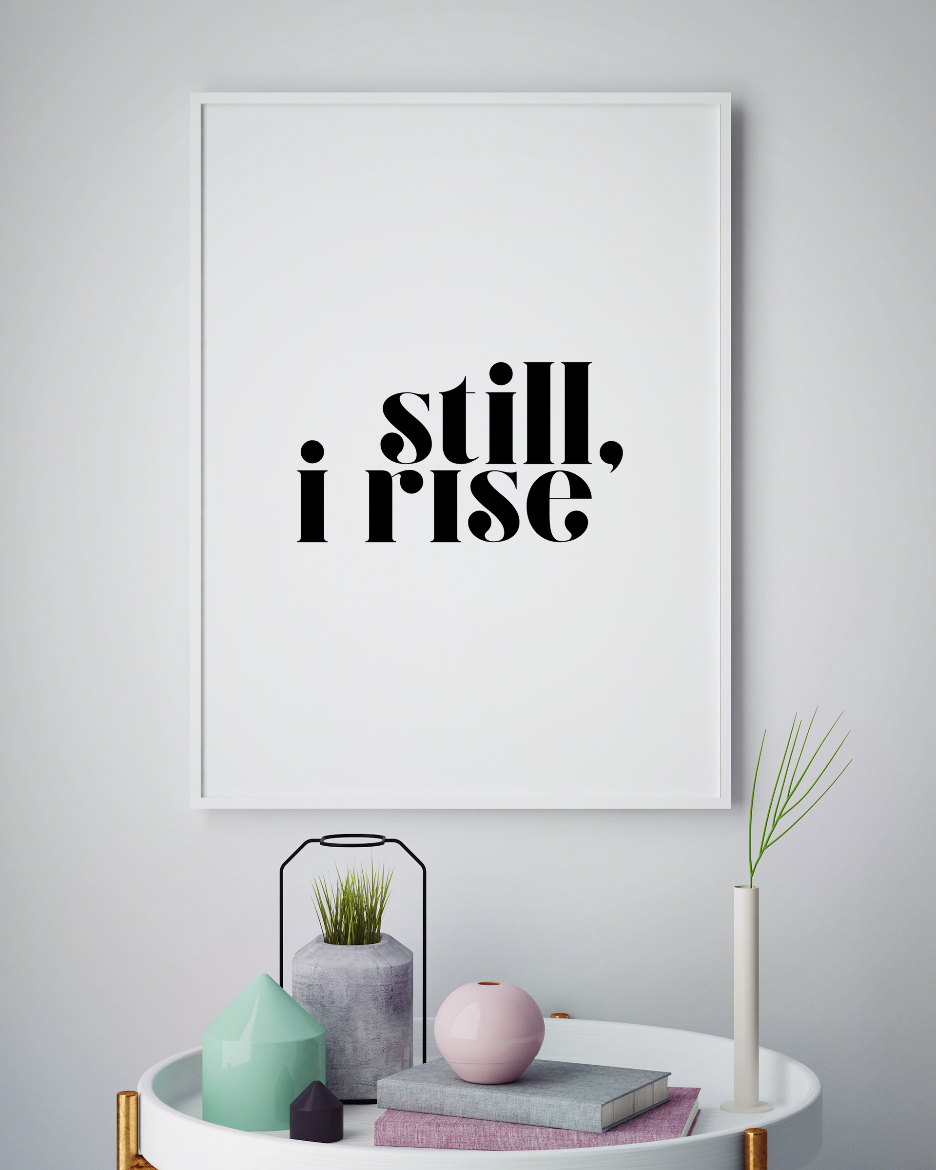 spirationnelle avec une affirmation quotidienne en lettres noires sur un fond blanc. Donnez-vous le pouvoir de continuer avec la phrase Still, I Rise (Je me lève) en buvant votre café le matin et en planifiant votre journée.