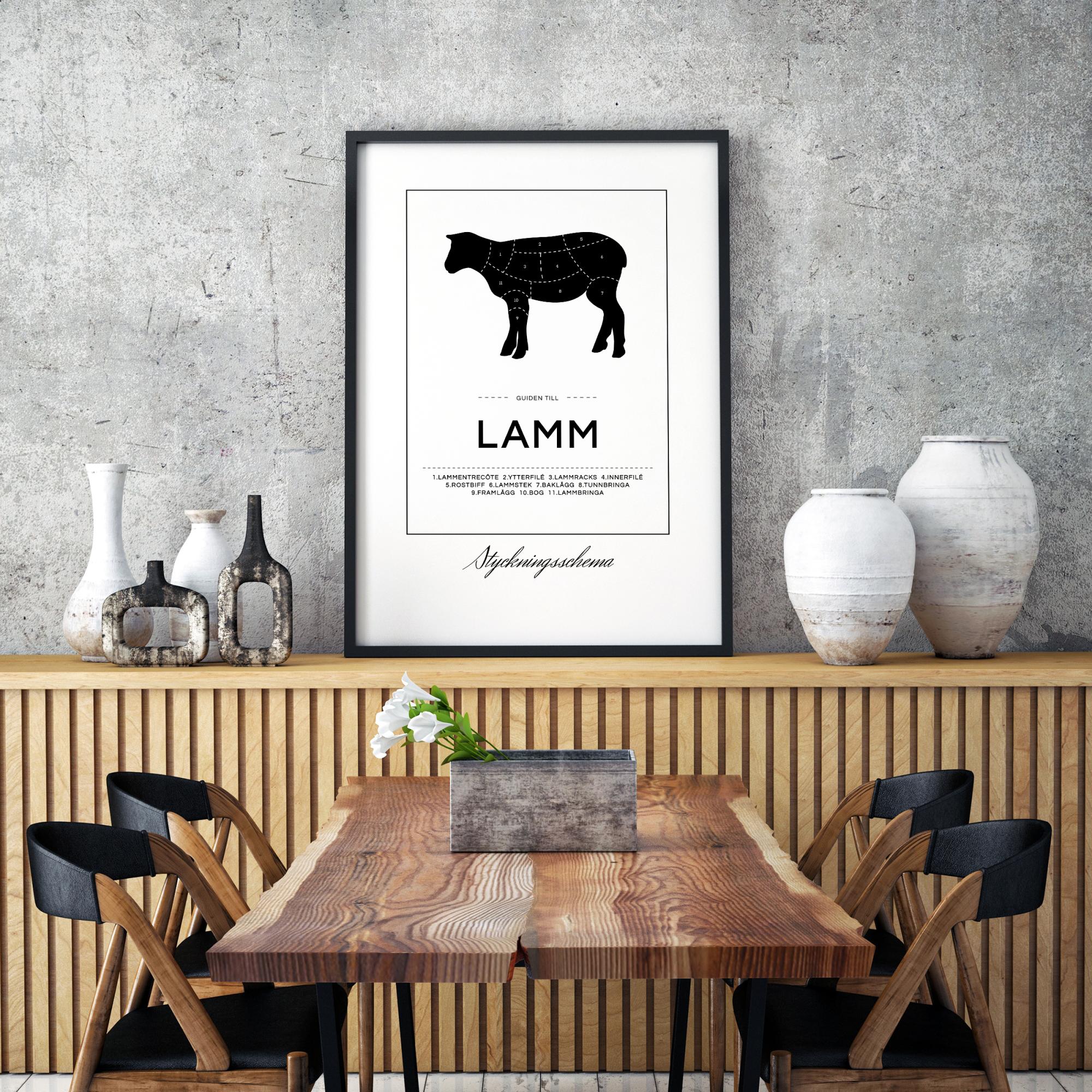 Le poster Schéma de Découpe Agneau est imprimé dans notre propre studio de prints sur un papier premium de 230 grammes qui est certifié FSC et résistant au vieillissement. Nous avons choisi cette épaisseur robuste et cette surface mate parce qu'elle offre une impression élégante sans reflets et donne une sensation de qualité. En imprimant le produit nous-mêmes, nous réduisons également notre impact sur l'environnement.