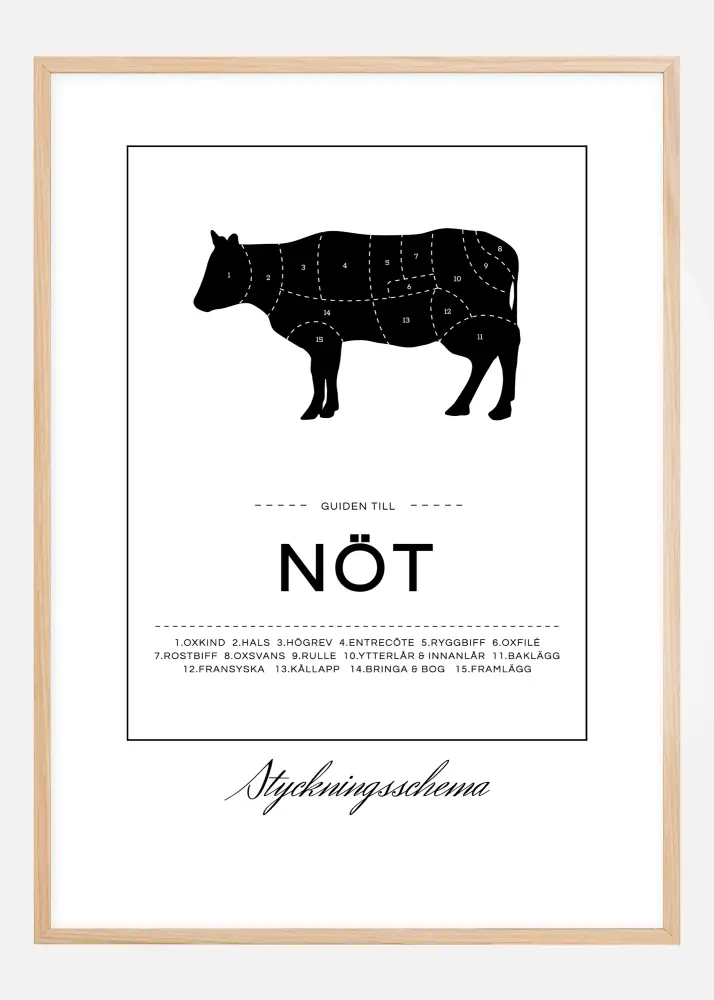 Le Poster Schéma de Découpe Bœuf est imprimé dans notre propre studio de prints sur un papier premium de 230 grammes qui est certifié FSC et résistant au vieillissement. Nous avons choisi cette épaisseur robuste et cette surface mate car elle offre une impression élégante sans reflets et avec une sensation de qualité. En imprimant le produit nous-mêmes, nous réduisons également notre impact environnemental.