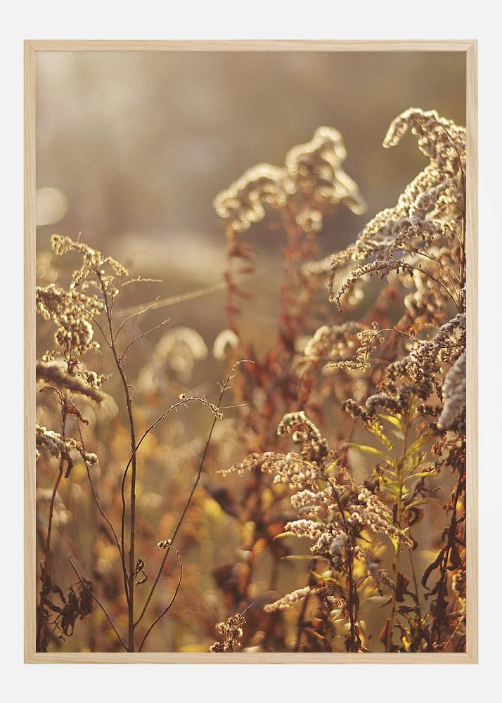 Un poster estival d'herbes douces éclairées par le soleil d'été. Les frondes et les tiges de l'herbe ont une teinte dorée magique lorsque le soleil se couche. Les parties délicates de l'herbe sont nettes, créant une profondeur et des détails étonnants dans cette douce affiche où vous pouvez presque sentir l'air chaud.