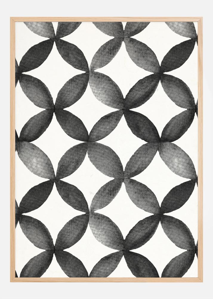 Cette affiche est un hommage à la puissance esthétique des motifs géométriques. Le motif récurrent se compose d'une série de plantes feuillues entrelacées en nuances gracieuses de noir et blanc. Elles créent un motif en flux constant qui est à la fois captivant et relaxant à contempler. Cette impression allie une inspiration naturelle traditionnelle avec un style graphique moderne, ce qui en fait un ajout sophistiqué à chaque maison.
