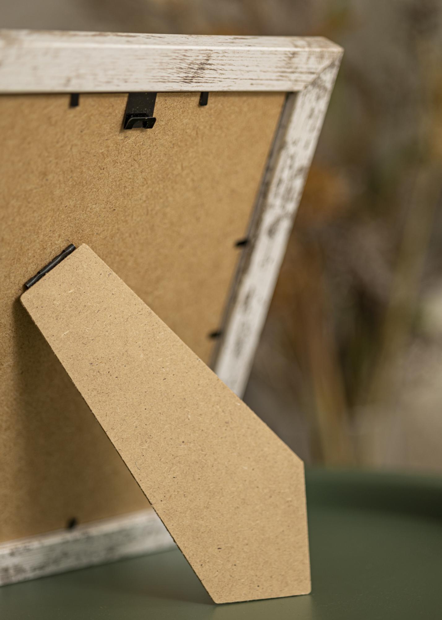 Joli cadre vintage avec un profil de cadre large à l'aspect usé en blanc et bois. Donne une dimension supplémentaire à vos images et s'adapte parfaitement lorsque vous voulez un cadre avec une sensation vintage authentique.
