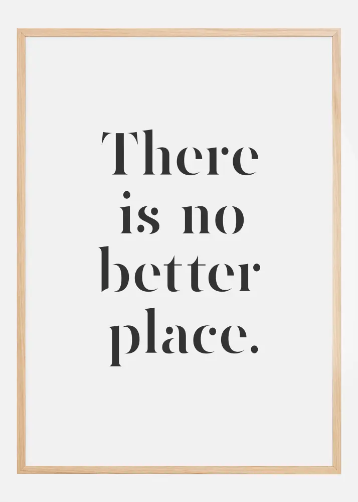 Découvrez notre affiche minimaliste et élégante qui transmet une sensation de calme et de convivialité avec son message simple "There is no better place". Cet imprimé moderne est parfait pour ceux qui apprécient le design scandinave et les messages clairs mais puissants dans leur décoration intérieure. Le motif, limité à un texte noir classique sur fond blanc, devient un élément de décoration intemporel qui convient aussi bien à un intérieur moderne qu'à un intérieur plus traditionnel.