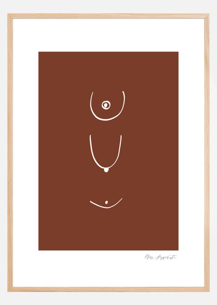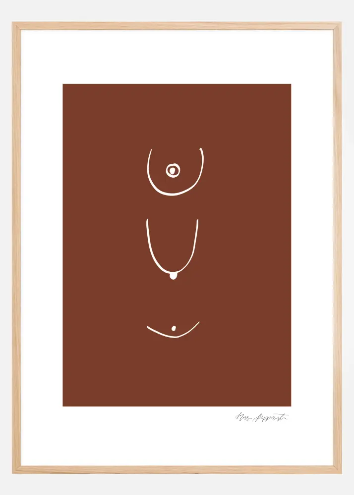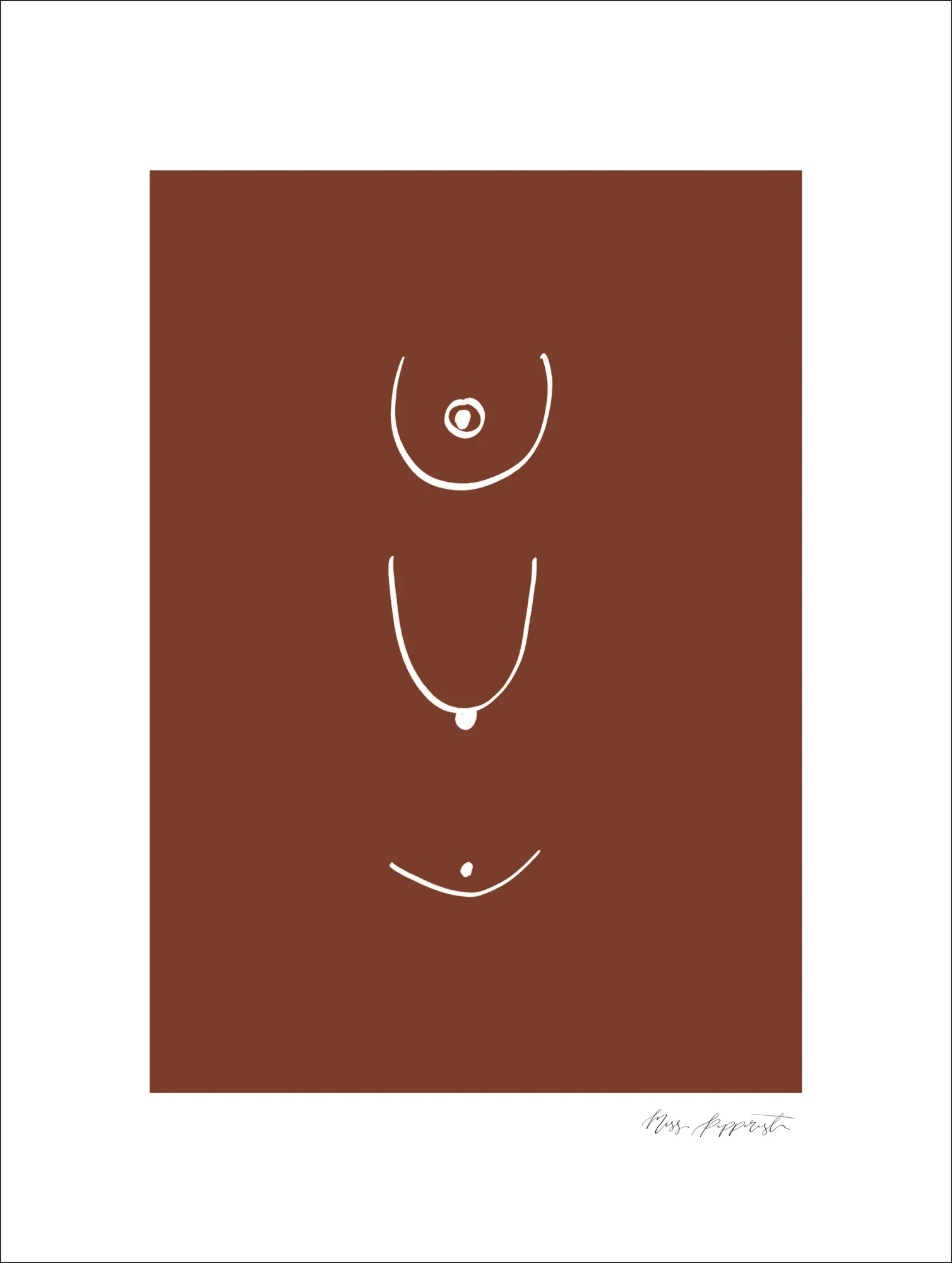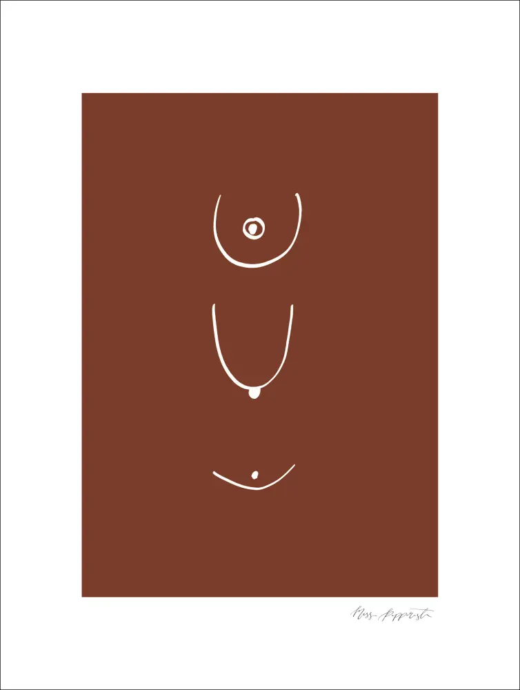 Une affiche abstraite composée de lignes courbes et de points blancs sur un fond brun uni. Les lignes peuvent être interprétées comme vous le souhaitez. Mais, elles ressemblent à des seins de femmes dessinés sous différents angles. Appréciez cette nature étrange de cette image simple.