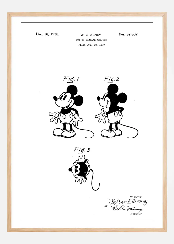 Ce poster de brevet intemporel est un hommage à l'innovation et au design, une représentation créative du dessin de brevet original daté du 16 décembre 1930. Ses figures emblématiques, de Mickey Mouse, représentées en lignes noires et blanches nettes sur le fond épuré, parlent à la fois aux collectionneurs et aux passionnés de l'histoire du design. Parfait pour insuffler une touche de nostalgie et de classe dans chaque pièce, ce poster de brevet n'est pas seulement une partie de l'histoire, mais aussi une pièce d'art contemporain.