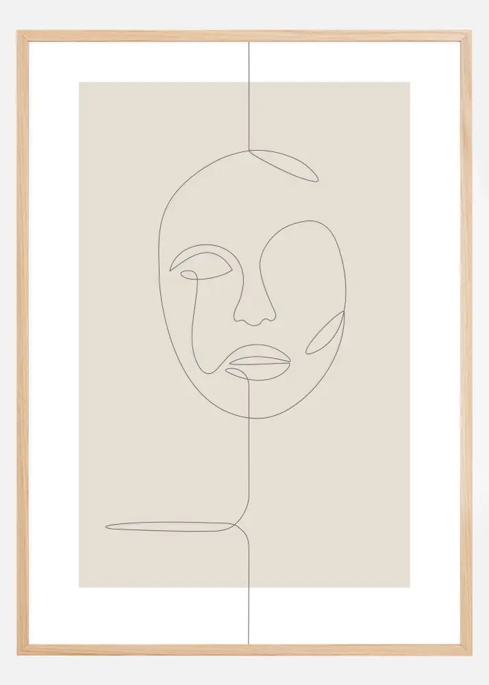Une affiche qui met en scène un dessin au trait fin représentant un visage abstrait. C'est une seule ligne qui est utilisée pour créer le visage. La ligne tombe du haut comme un bout de ficelle. Elle s'enroule pour créer le visage avant de tomber au bas de l'image. Étrangement convaincant, ce tableau devrait être associé à un mur audacieux pour plus d'éclat.
