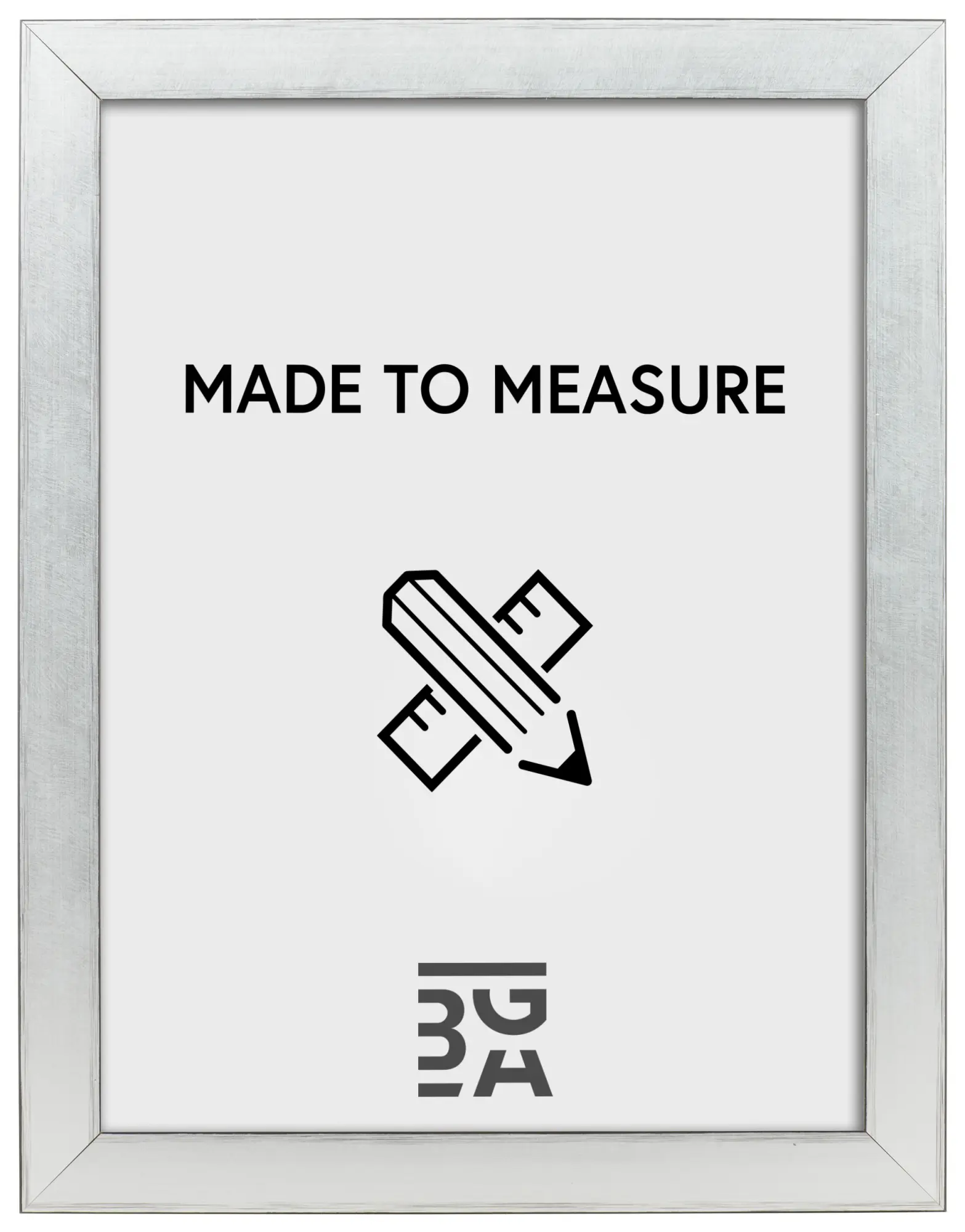 Laissez-nous créer pour vous un élégant cadre argenté qui propulse votre photo vers de nouveaux sommets ! Cet esthétique cadre photo est fabriqué selon vos souhaits dans notre propre atelier d'encadrement. La bordure est en bois et peinte avec une agréable couleur argentée brillante. Le cadre s'intègre parfaitement avec divers éléments intérieurs en blanc, noir et lavande. Si vous souhaitez raccorder l'intérieur de manière agréable, vous pouvez placer des objets de couleur argentée tels que des bougeoirs, des boîtes métallisées ou des bols dans la pièce.