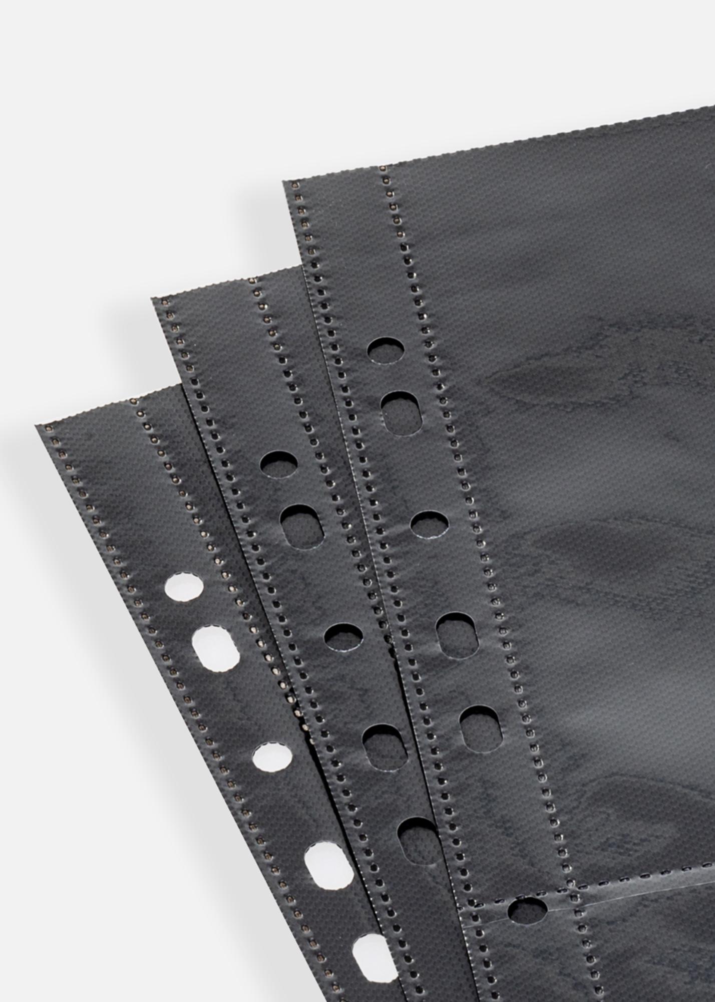 Ultimate Pochettes Photo 15x20 cm Paysage est un ensemble de 10 pages d'album noires de taille 23,5x32,5 cm. Elles peuvent contenir jusqu'à 40 photos en format paysage de 15x20 cm. Une solution pratique et élégante pour organiser et préserver vos photos de manière sûre et claire.