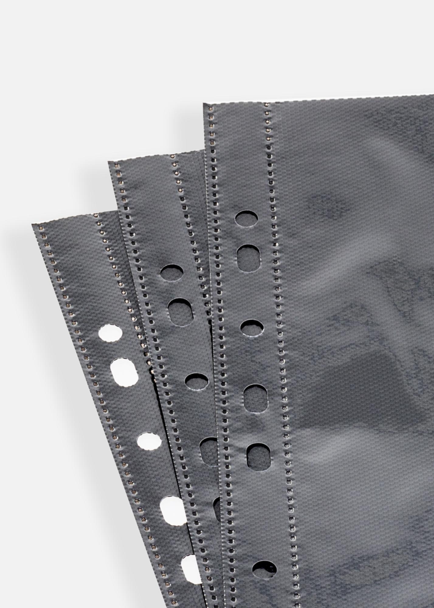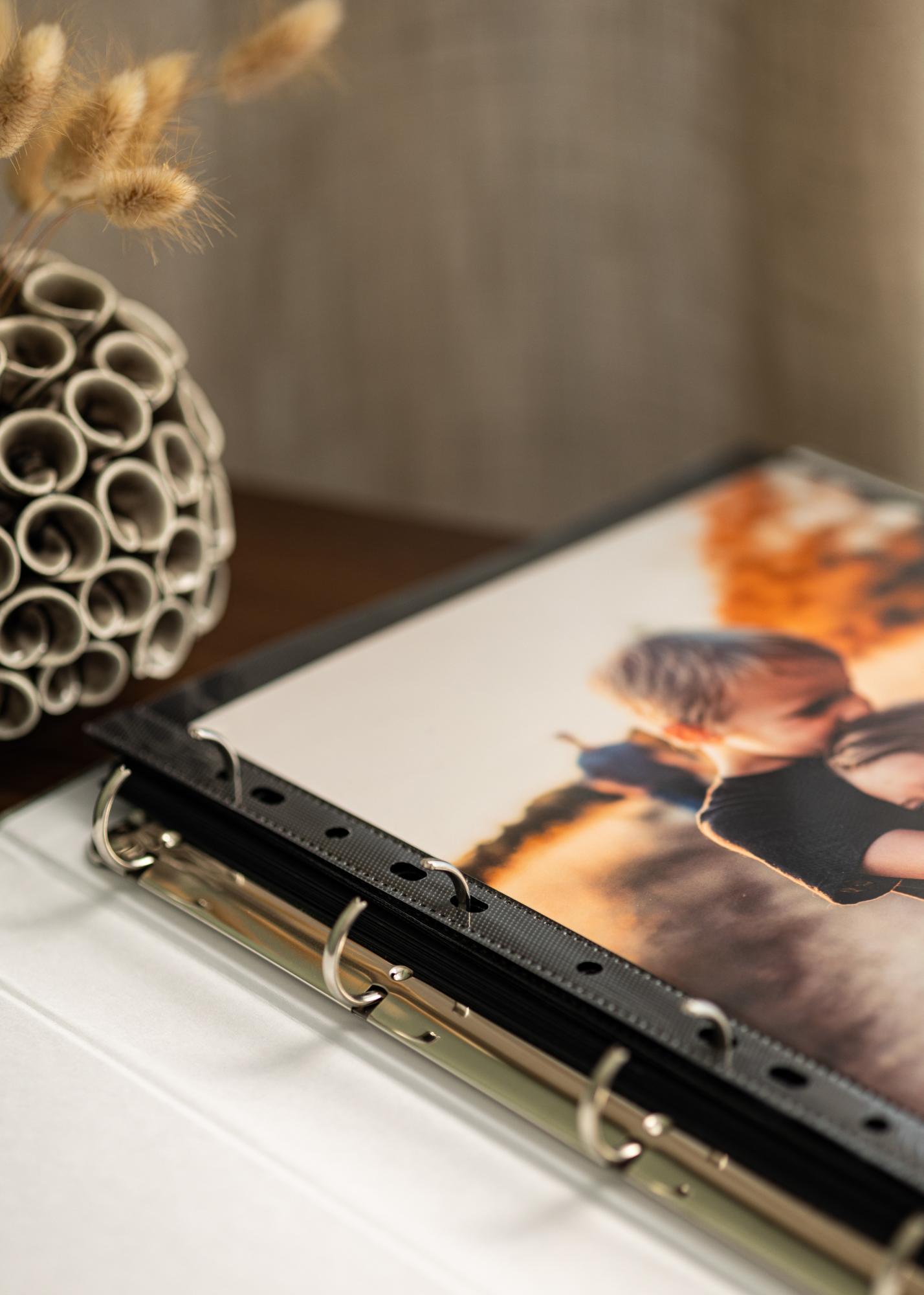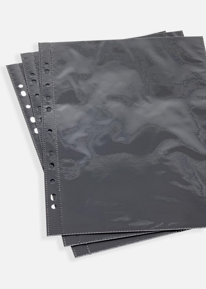 Pochettes photo Ultimate 21x29,7 cm A4 Portrait est un ensemble de 5 pages d'album noires de taille 23,5x32,5 cm. Elles peuvent contenir au total 10 photos verticales au format A4 (21x29,7 cm). Une solution pratique et élégante pour organiser et préserver vos photos de manière sûre et claire.