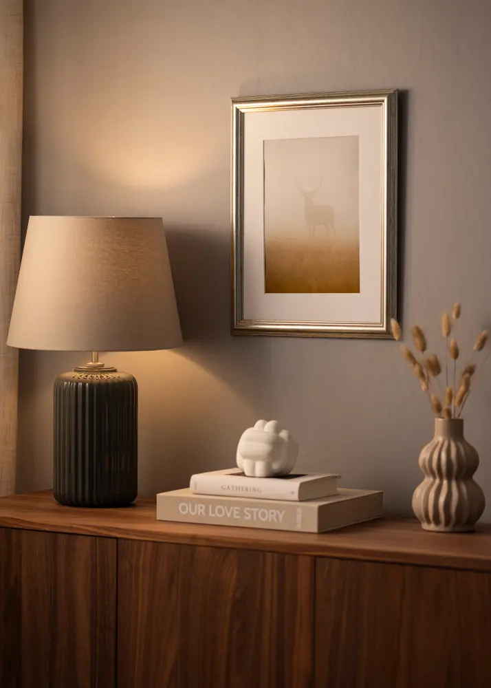 Västkusten Silver est un cadre de qualité suédoise de la Galleri 1. Le cadre a un profil de couleur argent massif d'une largeur de 31 mm. La couleur argentée du cadre comporte également des éléments tachetés de noir, ce qui donne plus de douceur au profil argenté. Cela permet au cadre de s'adapter facilement et de se fondre dans la plupart des environnements.