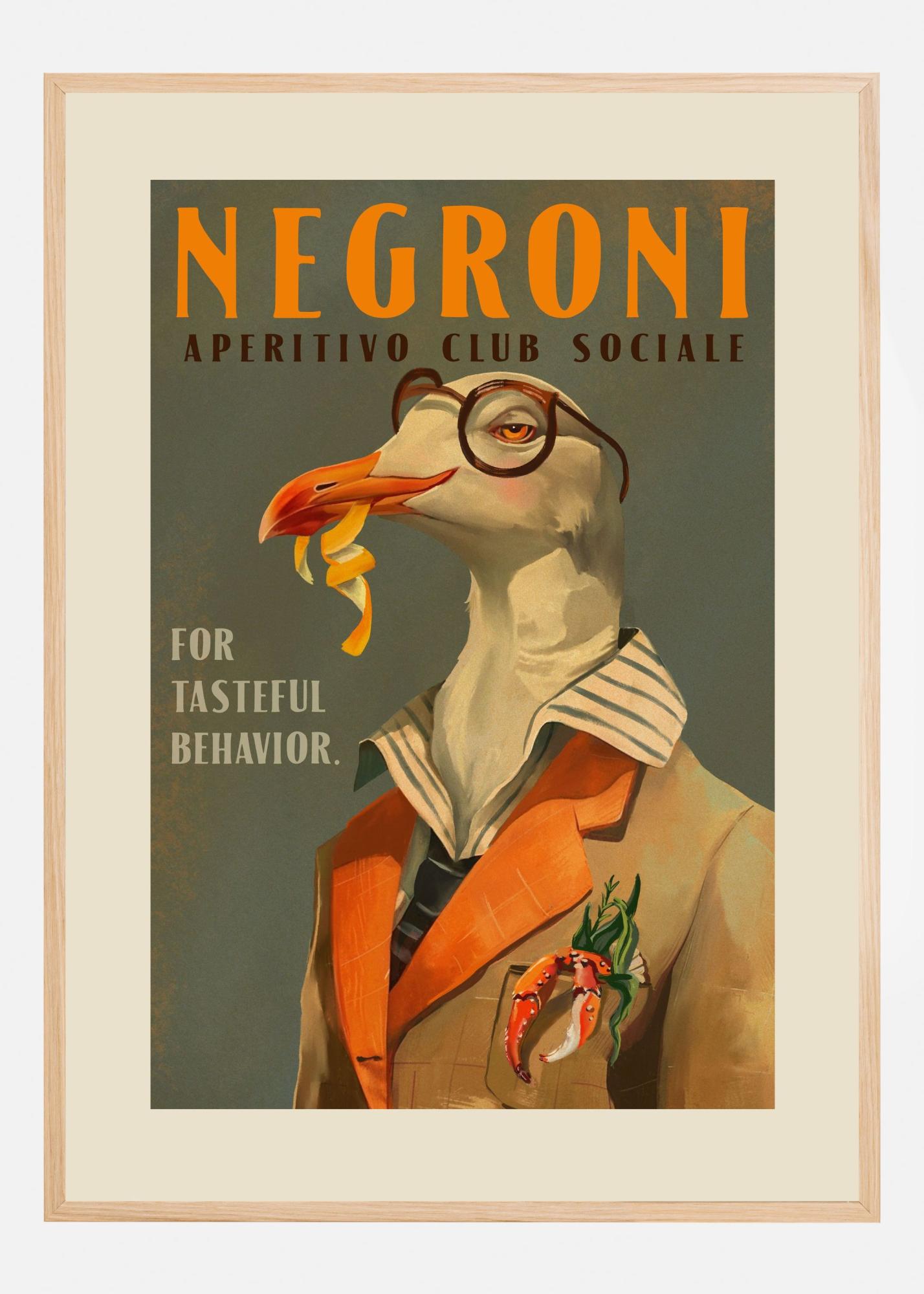 Vintage Art Deco Negroni Poster Of A Fancy Seagull Poster
