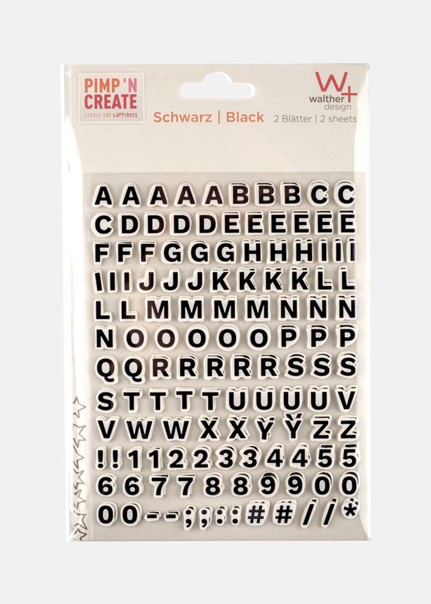 Die Buchstaben sind 1 cm groß und haben ein stilvolles Design in Schwarz. Die Verpackung enthält 2 Bögen mit 126 Buchstaben, Zahlen und Sonderzeichen.