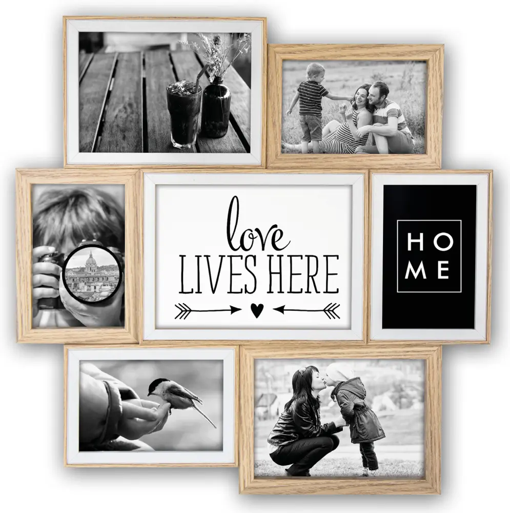 Ugs:Joli cadre pêle-mêle en bois avec des emplacements pour 7 images de tailles différentes.