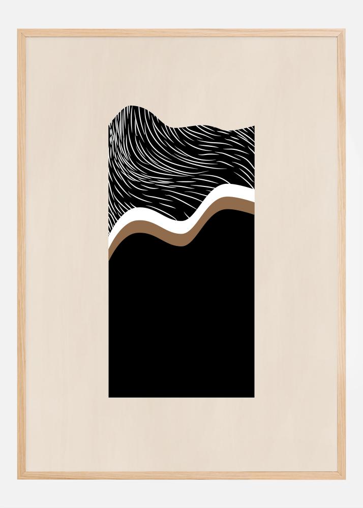 Ce poster combine des graphiques audacieux avec une palette de couleurs subtile pour créer un contraste visuel à la fois saisissant et élégant. Le fond noir donne à l'œuvre une profondeur, tandis que les vagues dynamiques blanches et brun doré donnent une illusion de mouvement. Ce design minimaliste mais expressif est inspiré à la fois par le monde naturel et les courants artistiques modernes, et serait un ajout marquant dans n'importe quelle maison ou bureau moderne.