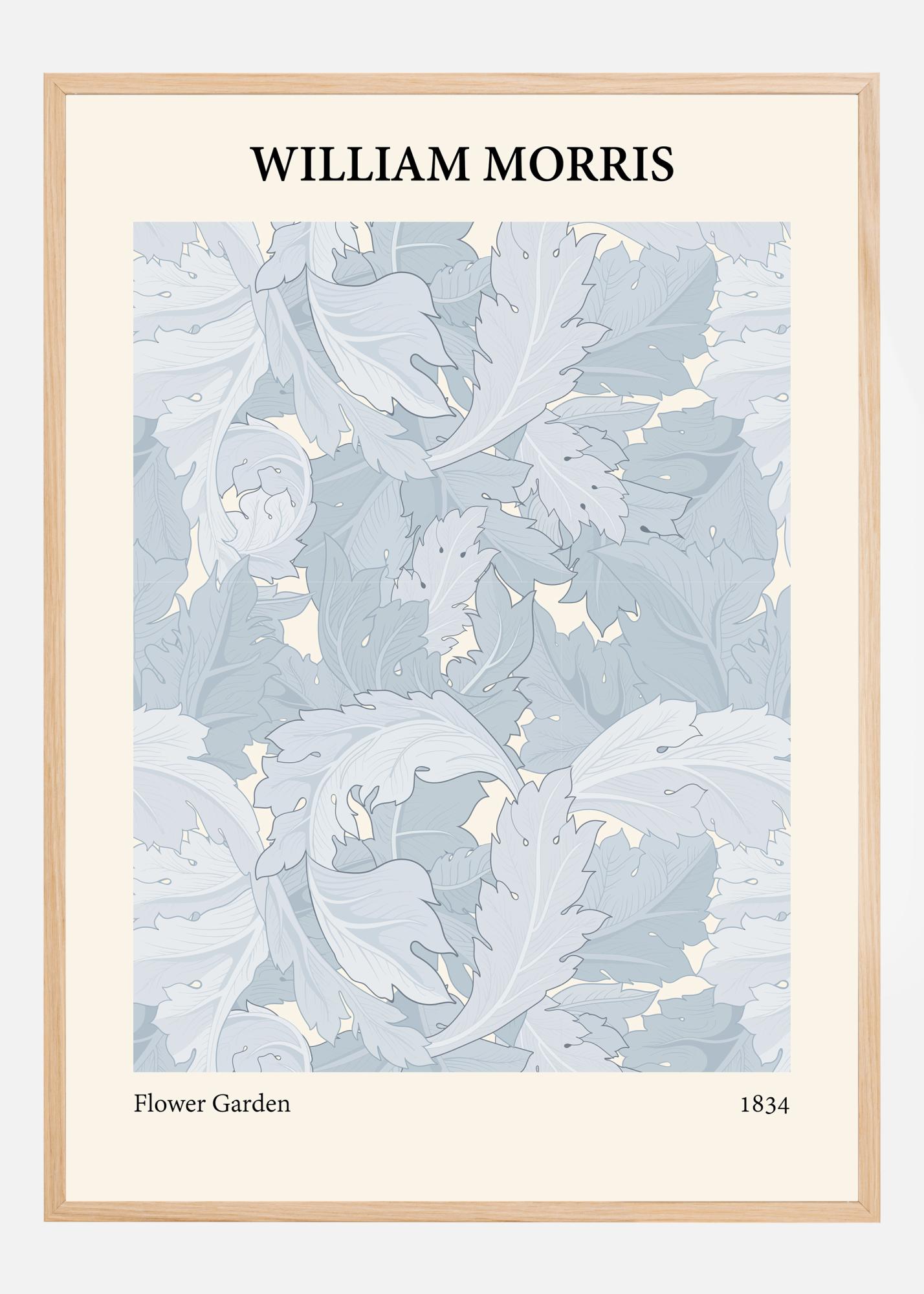 Avec une ambiance de calme et d'élégance, cette affiche de William Morris présente une symphonie de feuillages ornés dans une palette de couleurs fraîches et apaisantes. "Flower Garden" comme le suggère le titre, capture l'essence d'un jardin luxuriant et silencieux à travers son motif de feuilles détaillé qui s'écoule sur la surface avec un rythme doux. La palette de couleurs est soigneusement choisie pour refléter la beauté subtile de la nature et inclut bleu ciel, vert feuillage et couleurs crème pâles, qui ensemble créent une esthétique harmonieuse et équilibrée.
