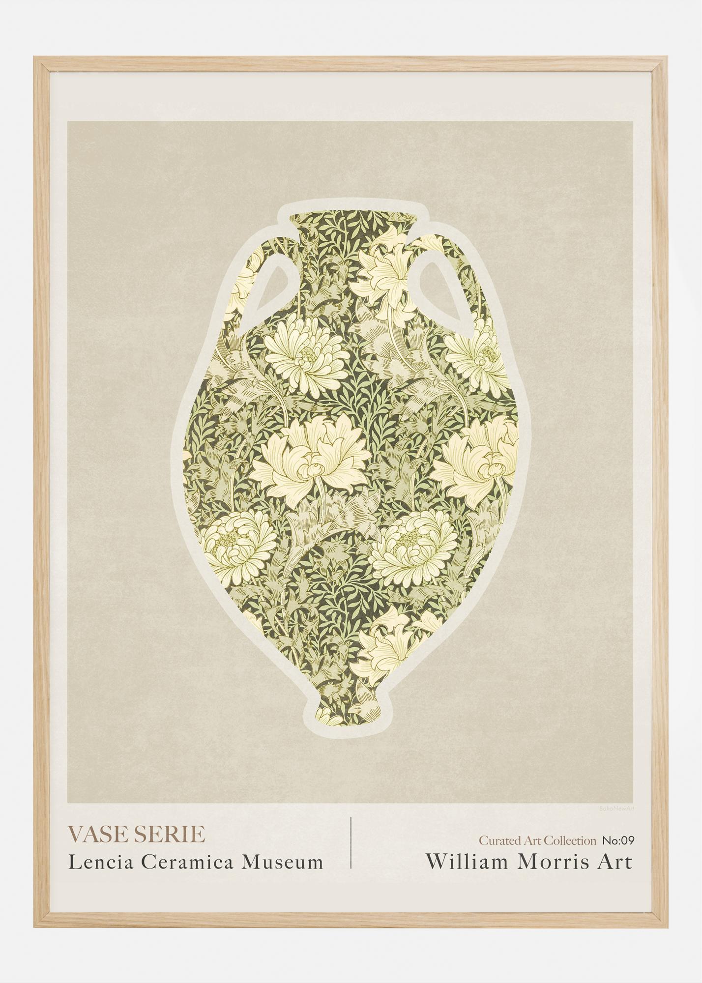 Cette affiche élégante et riche en détails fait partie de notre "Collection d'Art Curatée", et est inspirée par William Morris, une icône dans l'art de créer des motifs et une figure de proue du mouvement Arts and Crafts. L'affiche montre un vase stylisé, richement décoré avec un des designs botaniques classiques de Morris. L'illustration intemporelle reflète une appréciation pour l'artisanat, la richesse des détails et l'esthétique du monde naturel.