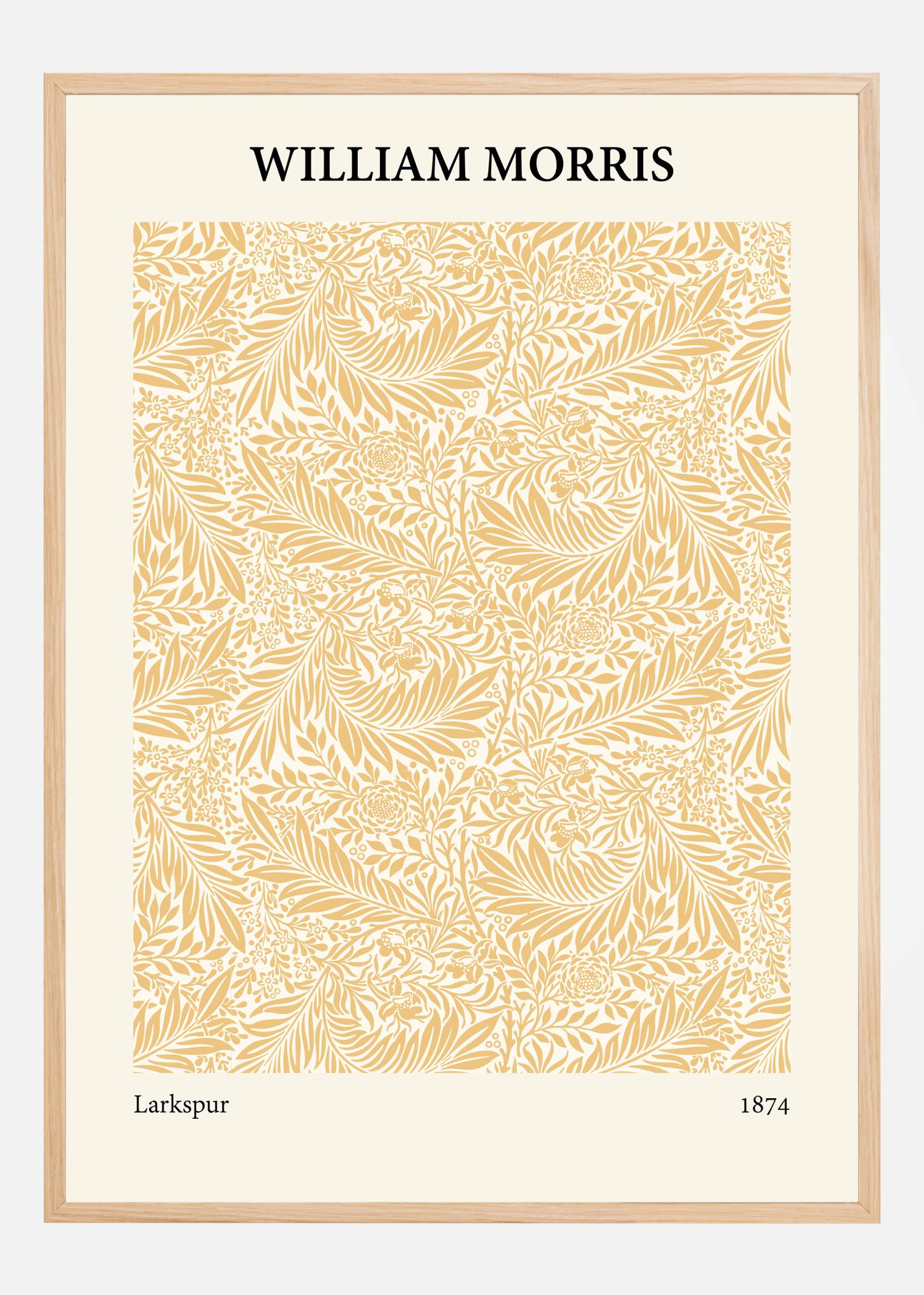 Avec sa chaude teinte dorée monochromatique, cette affiche recrée le design somptueux du "Larkspur" de William Morris de 1874. La riche composition de feuilles et de fleurs danse sur le papier, illustrant la compétence et la précision pour lesquelles Morris est connu au sein du mouvement Arts and Crafts. Cette affiche apporte une sensation de chaleur et de soleil à n'importe quelle pièce et est un merveilleux hommage à l'artisanat de l'époque victorienne.