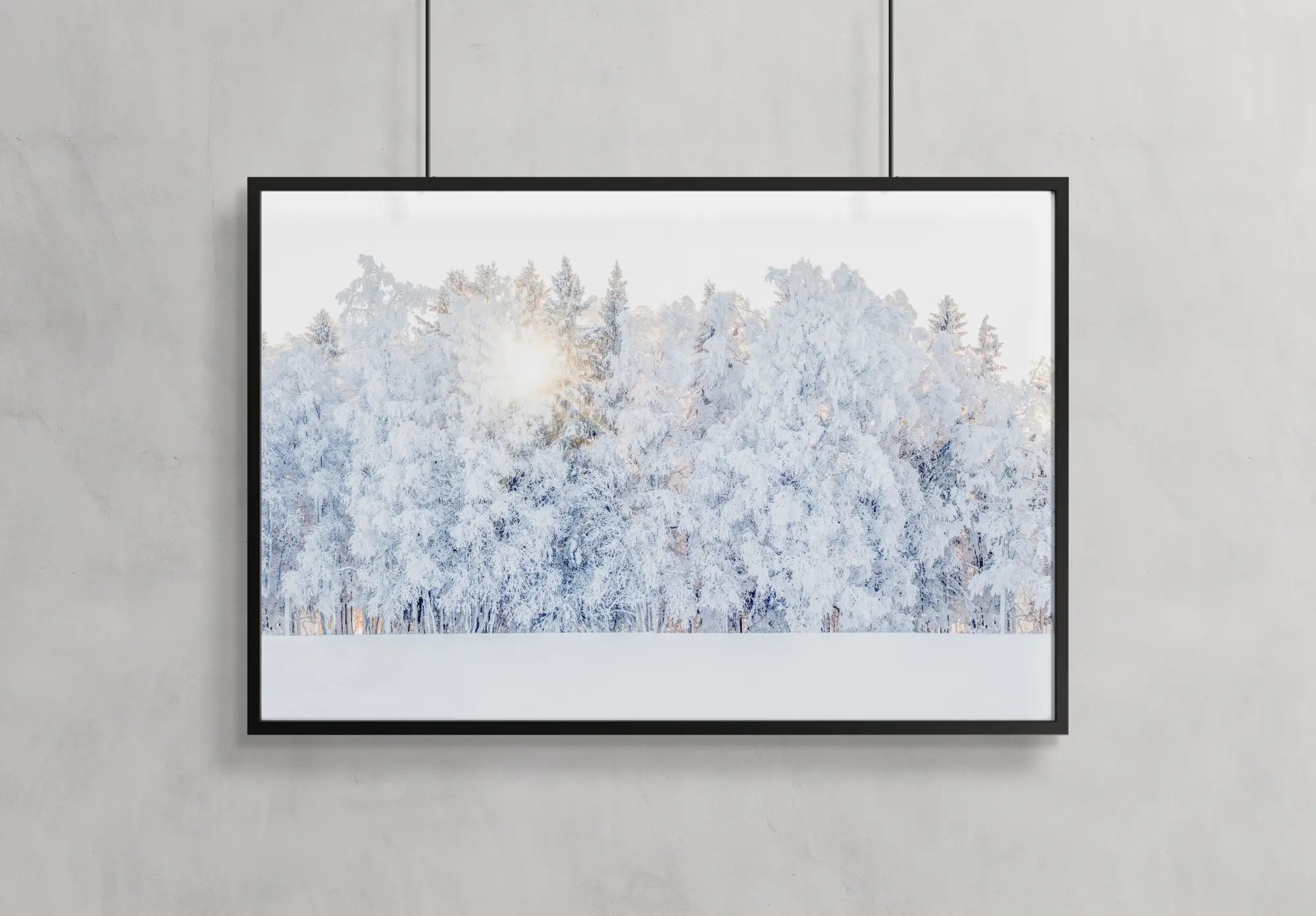 Une photographie éclatante de beauté qui met en valeur la nature féerique de l'hiver. Un poster merveilleusement apaisant qui rappelle les joues glacées et les pas craquants de la mi-hiver. Associez-le volontiers avec d'autres favoris pour créer un grand collage de tableaux.