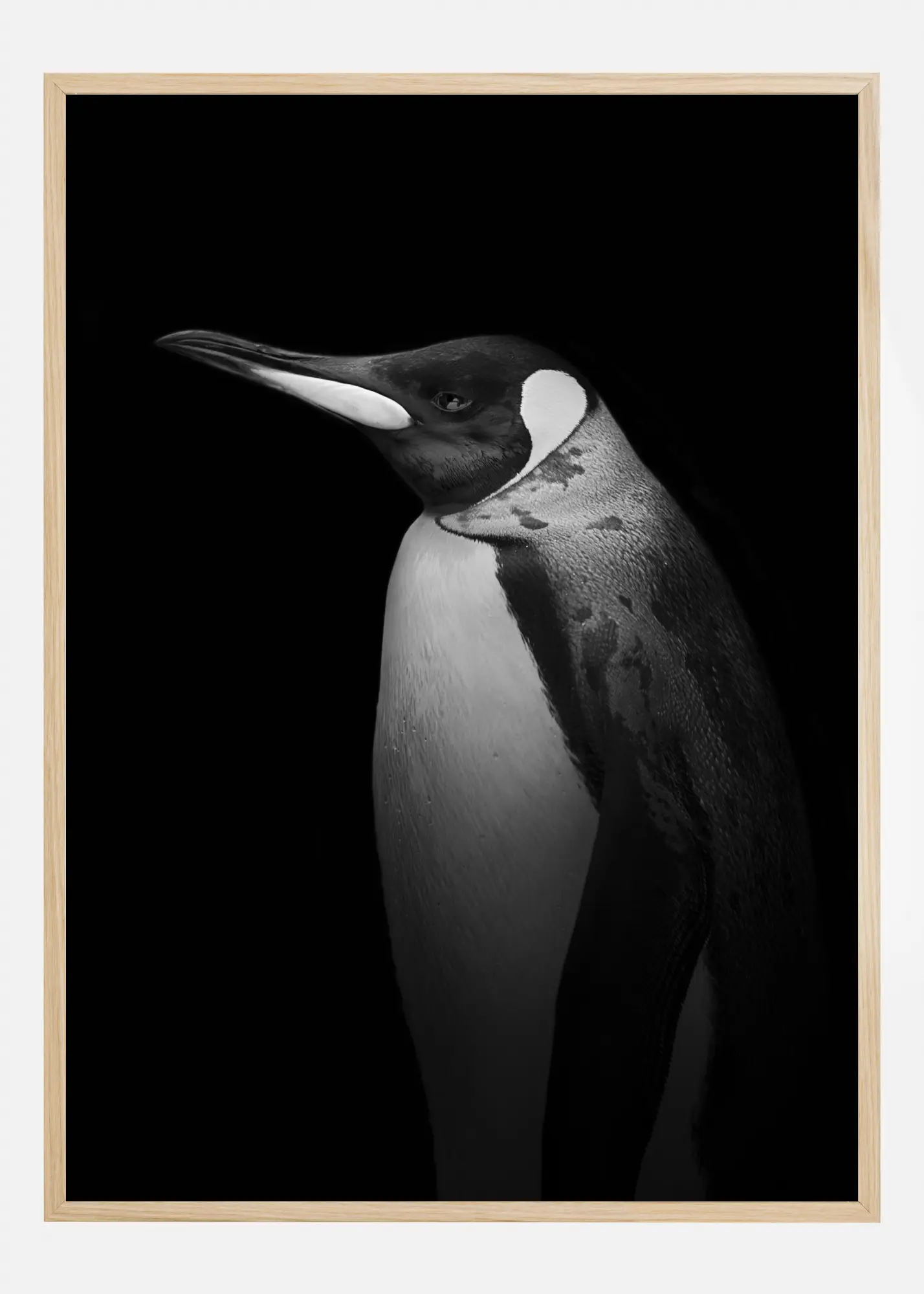 Une affiche nature d'un pingouin royal sur un fond noir transparent. Le profil du pingouin met en évidence les couleurs du bec et du visage. Associez-la à un mur de couleur pour le faire ressortir.