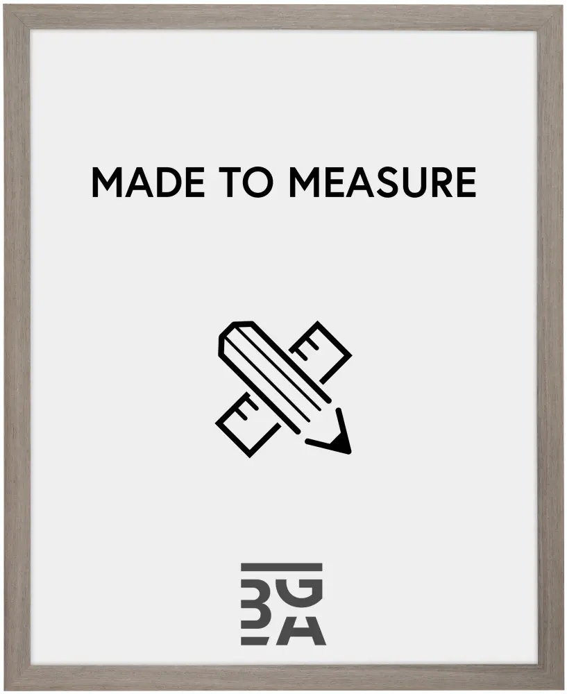 Ce cadre sur mesure a un listel de cadre de 21 mm de large et une profondeur de 38 mm, ce qui confère une sensation stable et robuste sans compromettre le design élégant. Les bords droits et le profil mince contribuent à un look moderne et épuré, tandis que les variations subtiles de couleur dans le veinage ajoutent de la profondeur et de la variation à l'impression générale.