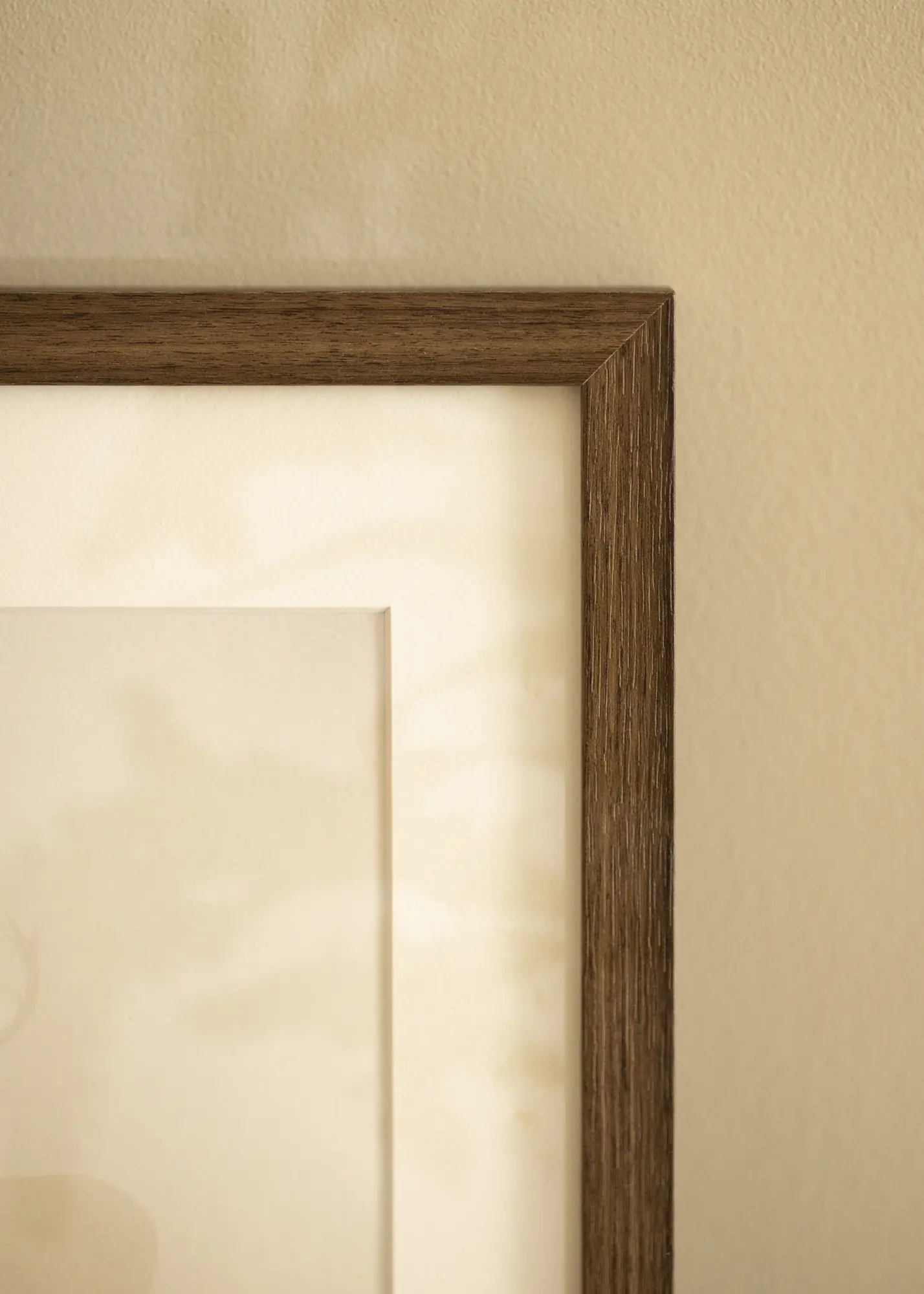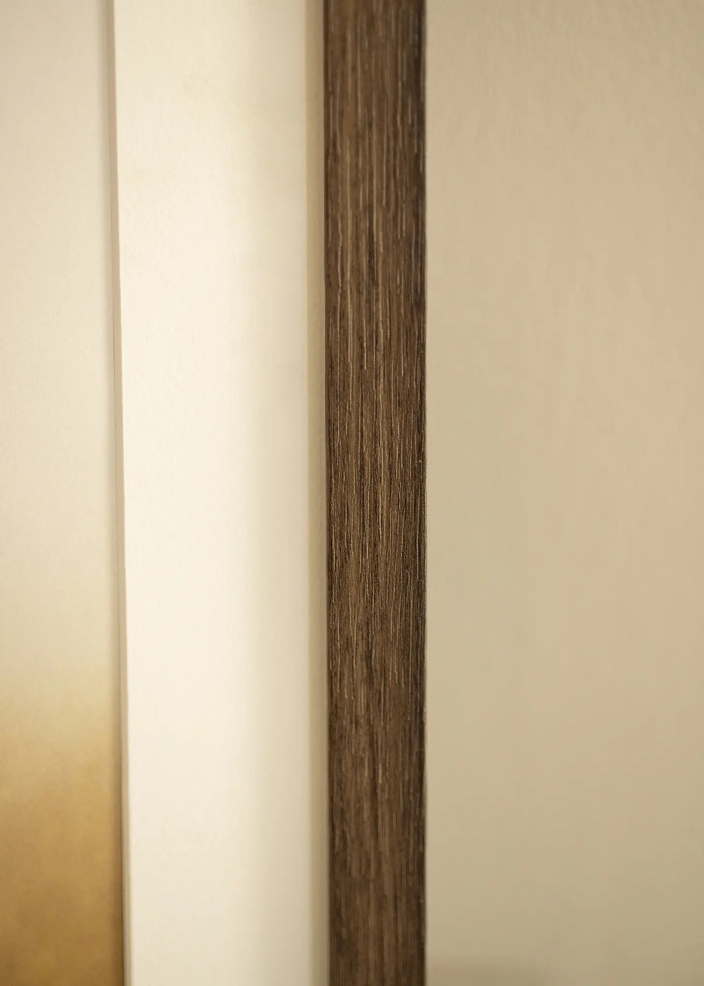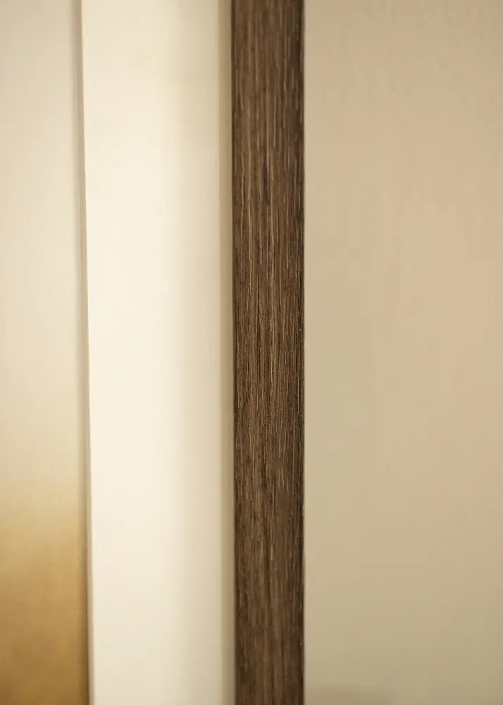 Le cadre possède une baguette de 21 mm de large et une profondeur de 38 mm, offrant une sensation stable et robuste sans dominer le sujet. Les bords droits et le profil étroit contribuent à un design moderne et élégant qui s'intègre facilement dans divers styles d'intérieur. Les nuances subtiles du grain ajoutent également de la profondeur et de la variation, rendant chaque cadre unique.